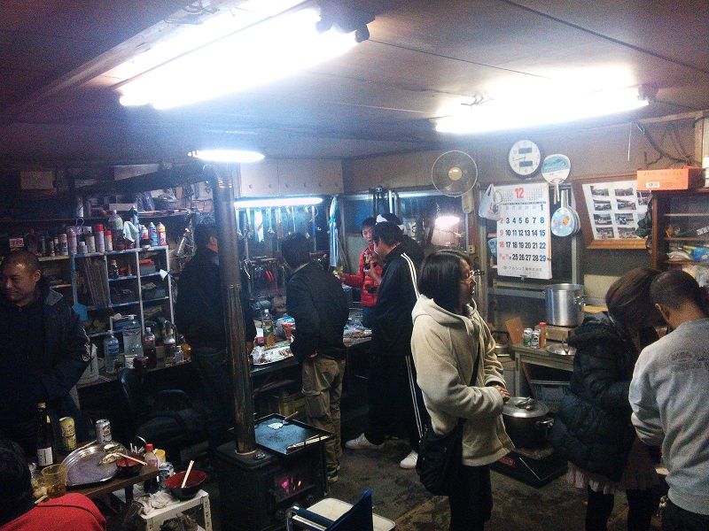店の親父が作っている光景をみんなでスタンディングオベーションで